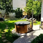 Belvarosi Kerteshaz med 2 sovrum, som erbjuder terrass och trädgård, ligger inom 7 minuters gångavstånd från Keszthelyi Festetics-kastely. Villan med 2 badrum har en parkering och en solig uteplats med utsikt över trädgården.